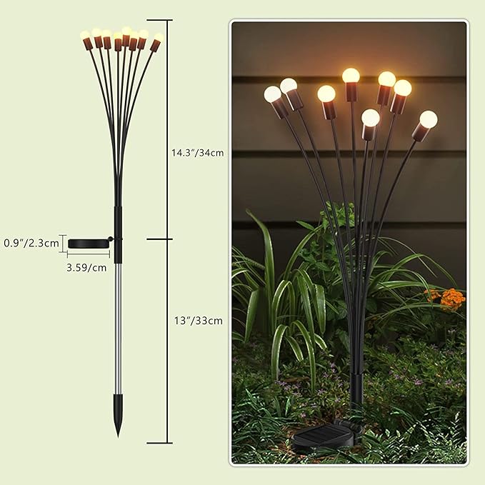 Firefly lights add sparkle to your yard. Create a romantic and festive atmosphere. It is the perfect outdoor decoration for patios, yards, lawns, and sidewalks, as well as any occasion for Halloween, Christmas, Weddings, New Year, parties, and more.