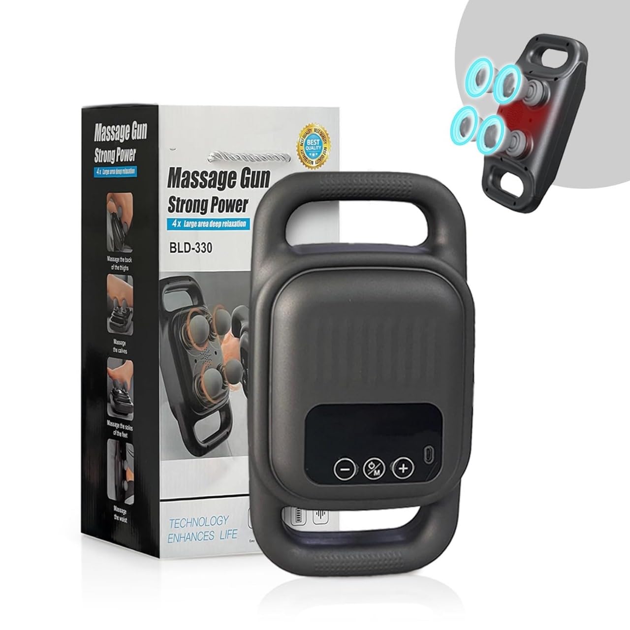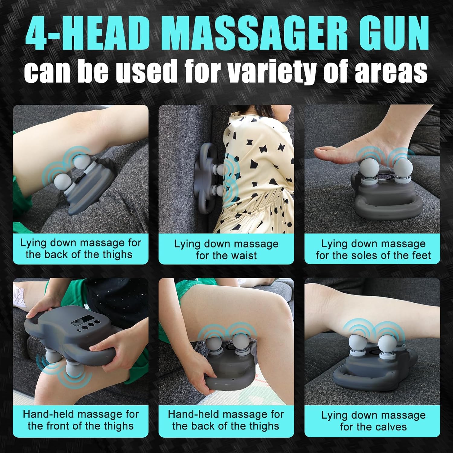 The FlexiPulse 4-Head Massager offers an exceptional massaging experience. Its versatile heads quickly relieve muscle tension and improve blood circulation. In just minutes, it targets sore spots, enhances relaxation, and promotes recovery.