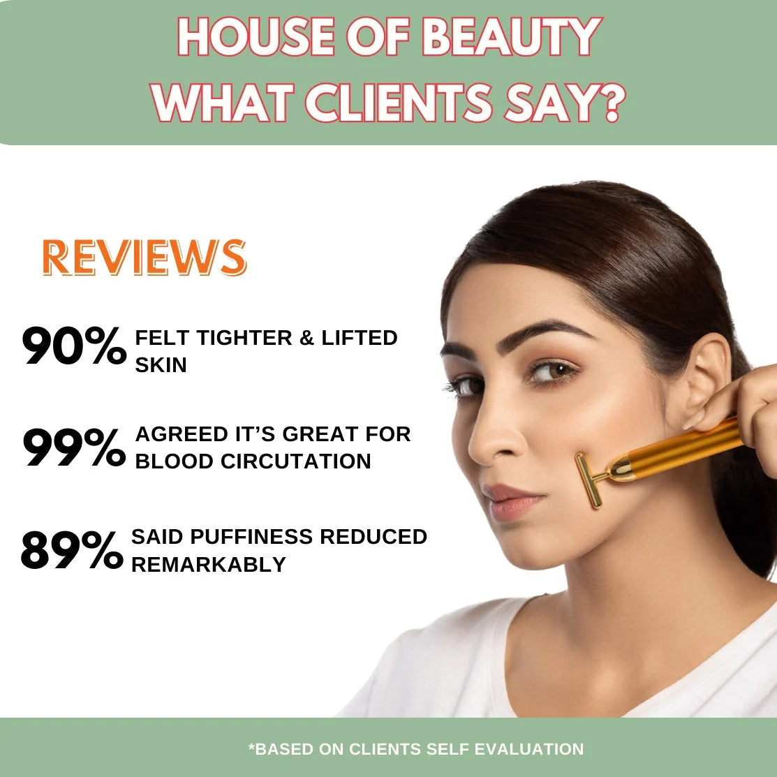 This tool delivers 6,000 micro-vibrations, providing a deep relaxing effect on your facial muscles. 💆♀️✨ It's not just a face massager; you can use it for your neck, under chin, and even hands. ✋ Use it with a House of Beauty signature face oil or serum for the best results! 🌿🌟