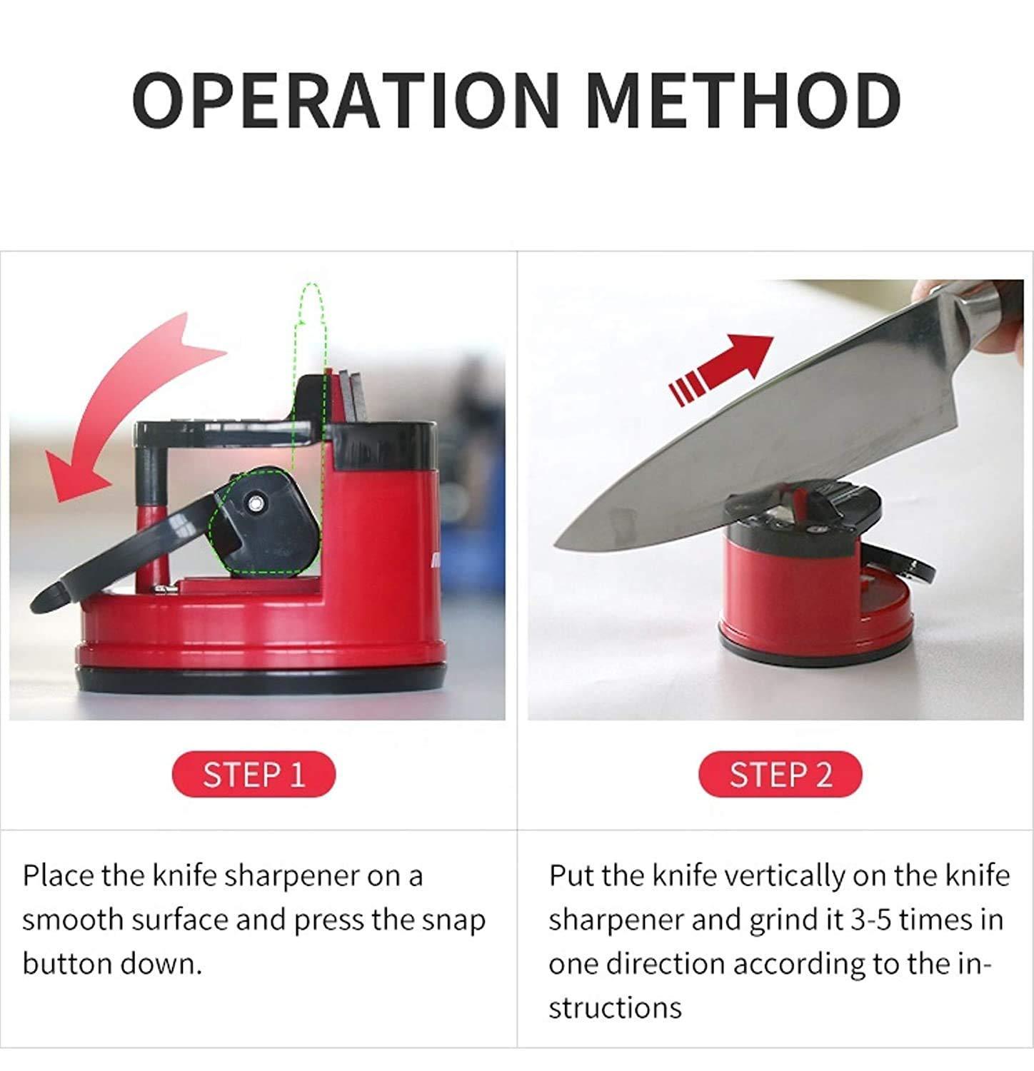 • The suction cup means you can attach the Knife Sharpener to almost any surface, horizontal or vertical, without the need for tools