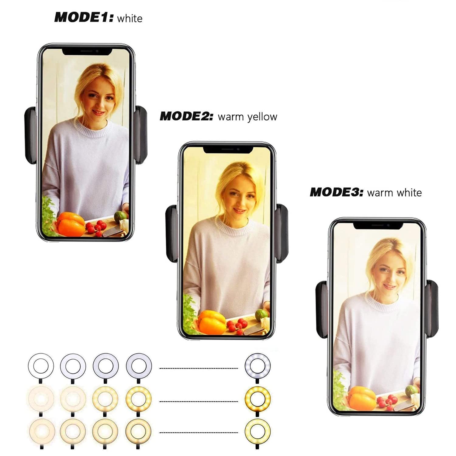 【Dimmable】- has multiple hues and brightness settings to get just the right look. Just choose from the 3 light color and 10 level brightness for your preferred uses -- make-up, lay flat, Selfie photos taking, dark scenery blogging, etc. No more searching for the perfect cell phone lights for selfies & streaming.