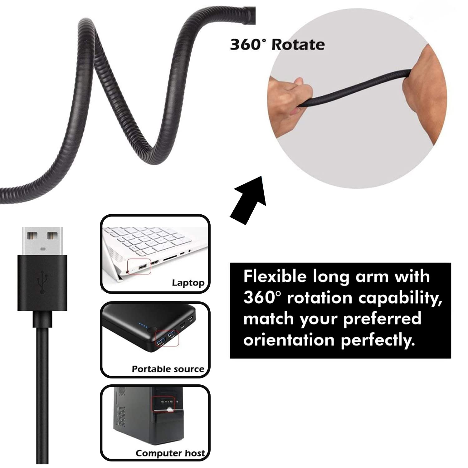 【Easy to use】- easy CONTROL on cord to power on/off or switch to the lighting mode you prefer. USB powered, no battery needed, works well with multiple devices - PC, laptop, Battery bank.
