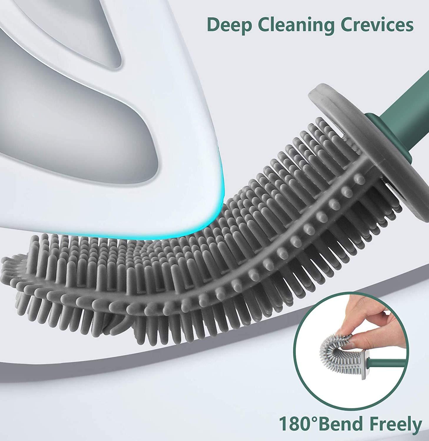 These Flexy Silicone Toilet Brushes made of high-quality ABS + silicone brush head, The anti-adhesive coating, no dirt can attach to the bristles and thus ensures a germ-free zone.